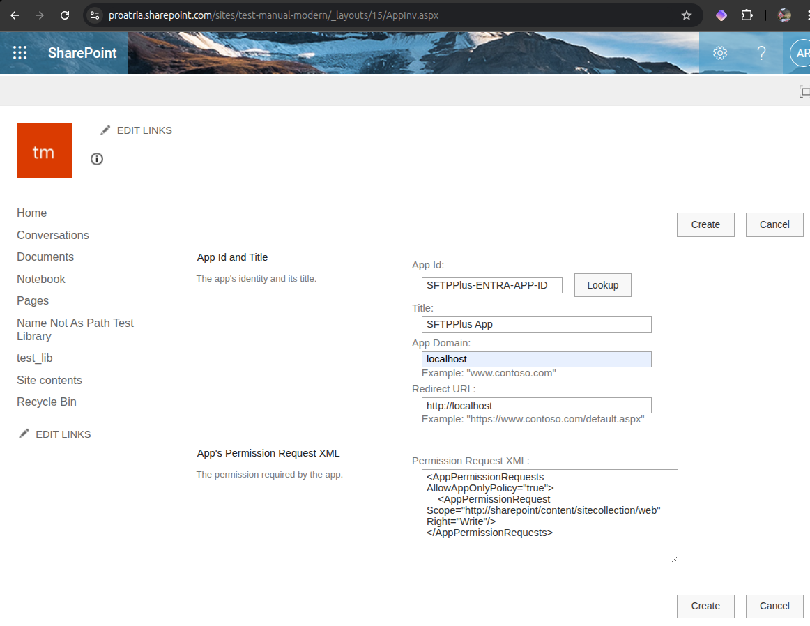 To connect to a SharePoint Online site you need to set up an Entra ID application registration for SFTPPlus.